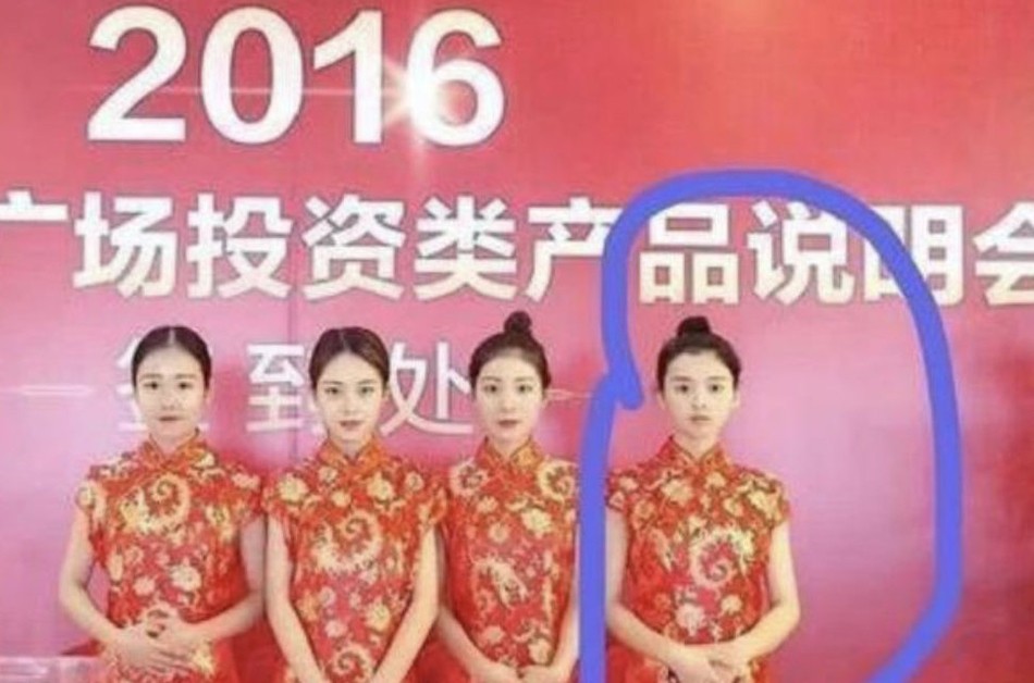 在2016年的一次展销会上,18岁的杨超越穿着红色旗袍,扎着丸子头,担任礼仪小姐。