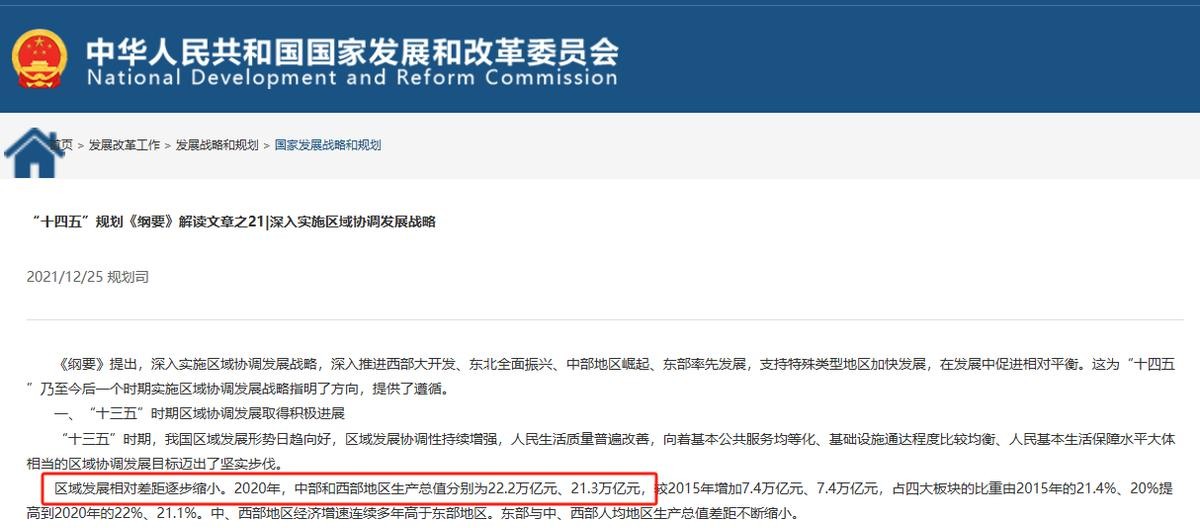 “十四五”规划《纲要》解读文章之21|深入实施区域协调发展战略 2021/12/25 规划司