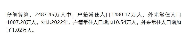 这一点上从各发达省份直辖市的常住人口和户籍人口对比就能看出,2023年末上海市常住人口大约为2487.45万人,但是同一时期上海的户籍人口仅为1480.17万人。