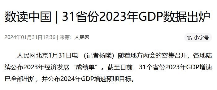 数读中国 | 31省份2023年GDP数据出炉,2024年01月31日 人民网