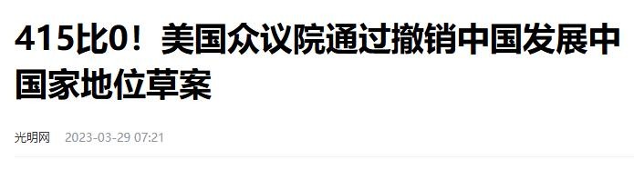 415比0!美国众议院通过撤销中国发展中国家地位草案,光明网2023-03-29