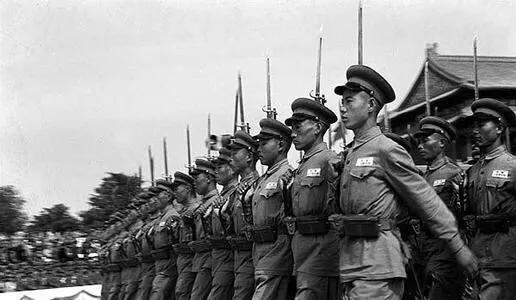 1950年国庆大阅兵,身着“50式”新式军服的解放军官兵。