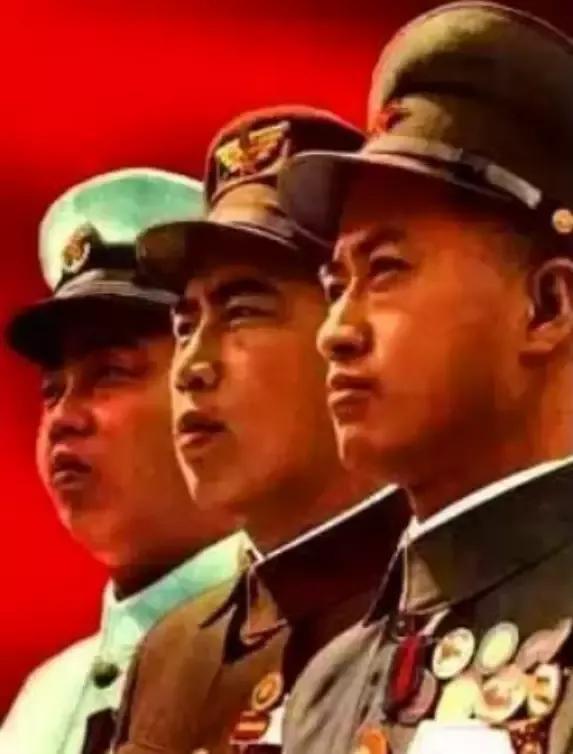 左3是时任南京军区司令员的许世友上将,身着“55式”士兵军服,佩戴上等兵军衔。