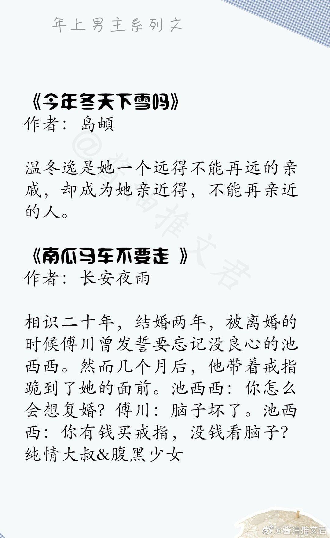大家好,我是大东,今天我给大家带来的是男主比女主大很多的小说合集,感兴趣的可以私信我拿书欧哦!