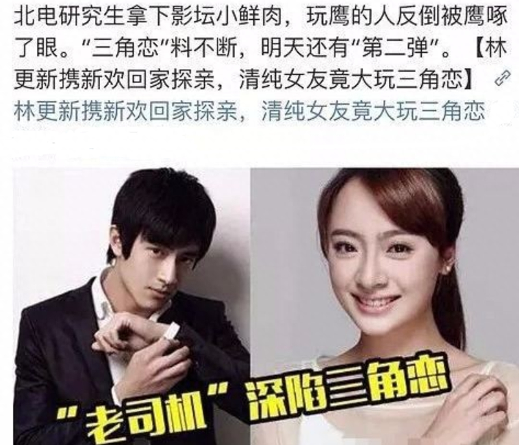而女方粉丝也不服气,觉得林更新太过花心,配不上她。