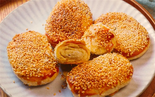 10. **鸭油酥烧饼**:承载着南京千年历史与文化,位列秦淮八绝之中,是南京夫子庙的特色名片。金黄的饼皮饱满有光泽,口感酥脆。咬下一口,鸭油的香气与酥脆的口感相得益彰,每一口都是对南京的深情告白。