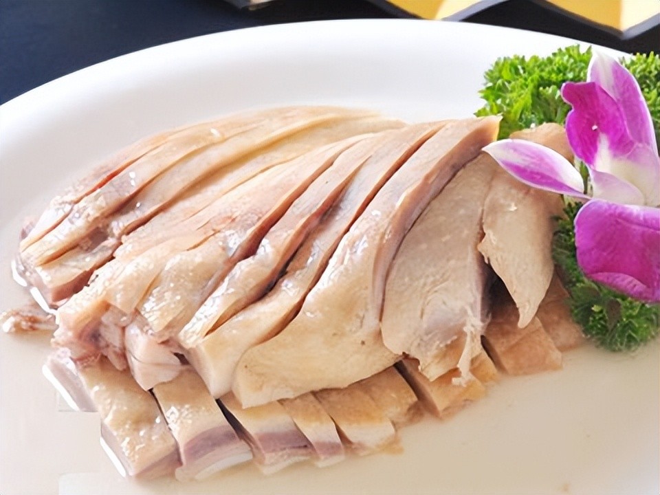 2. **盐水鸭**:也叫桂花鸭,中国地理标志产品,有两千五百多年历史。此菜在桂花盛开季节制作,故而得名。盐水鸭的特点是鸭皮白肉嫩、肥而不腻、香鲜味美,具有香、酥、嫩的特点。其制作工艺独特,使得鸭肉口感鲜美,肉质鲜嫩。可作为凉菜或搭配热菜食用。