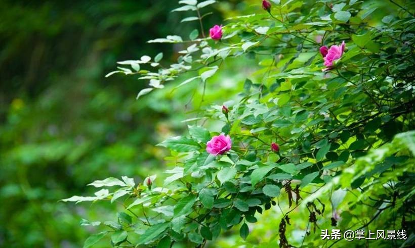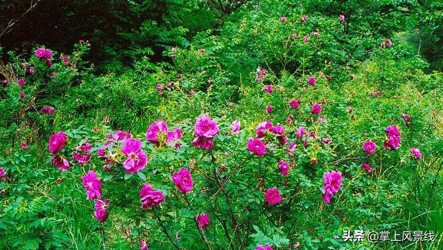 5月里山谷里遍山的野玫瑰丛半掩在青草中,生长面积约有400余亩,味道相当醇厚。阳光灿烂的日子,在这个原生态的山水森林间赏玫瑰,景美又清凉。
