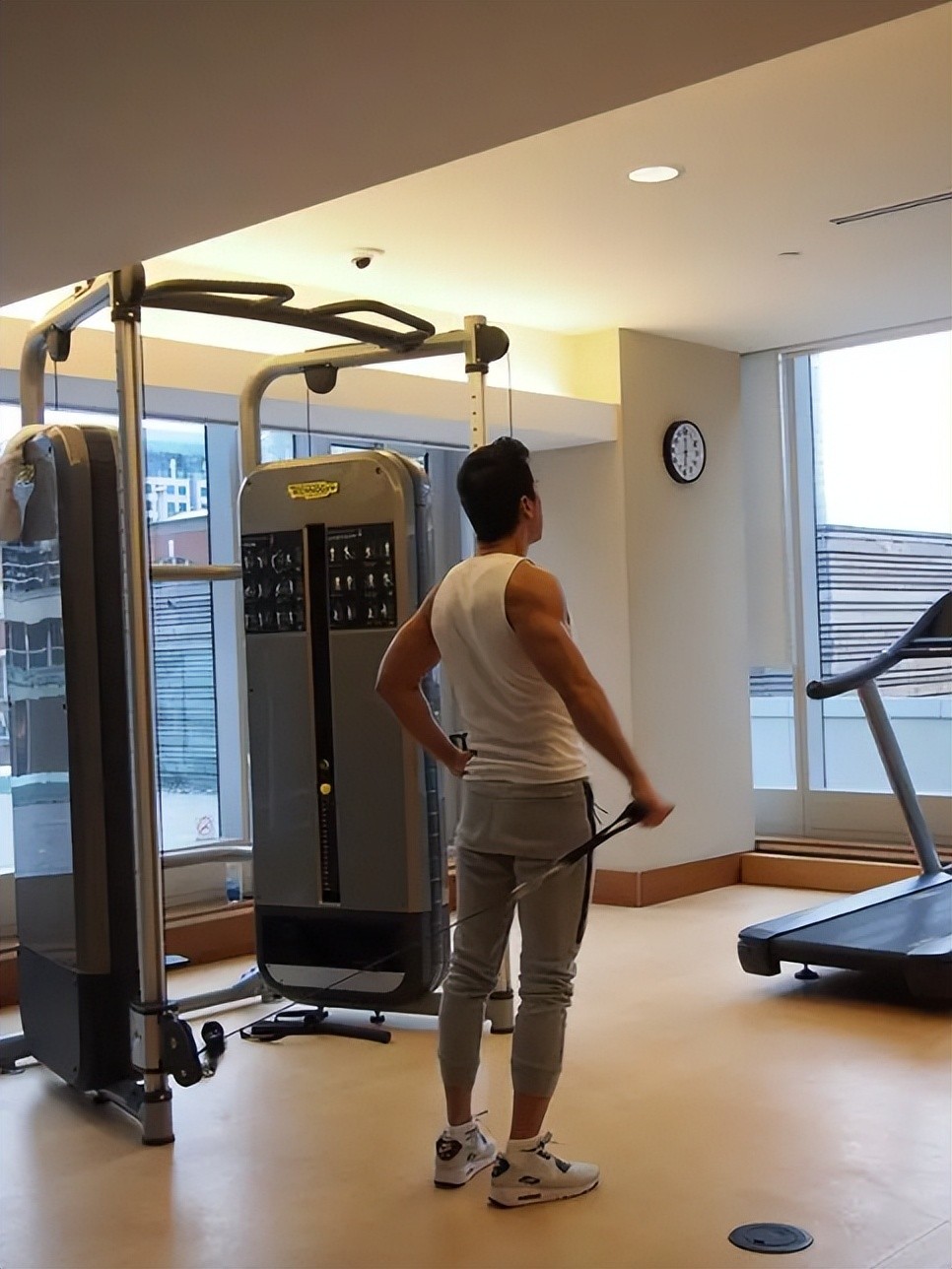 除了力量训练,有氧运动也是他保持活力的重要环节。看他在室内慢跑机上挥洒汗水,整个人热火朝天、神采奕奕,着实让人惊叹于他对健康生活方式的执着追求。