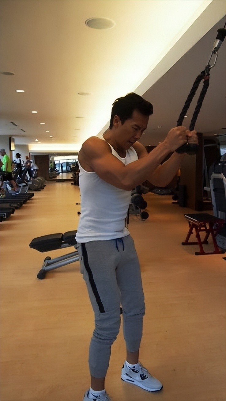 甄子丹依旧保持着一身勐力十足的"铁人"体格!让我们仔细品味一下这位实力派硬汉在健身房里那股子疯狂的"肌肉风采"!