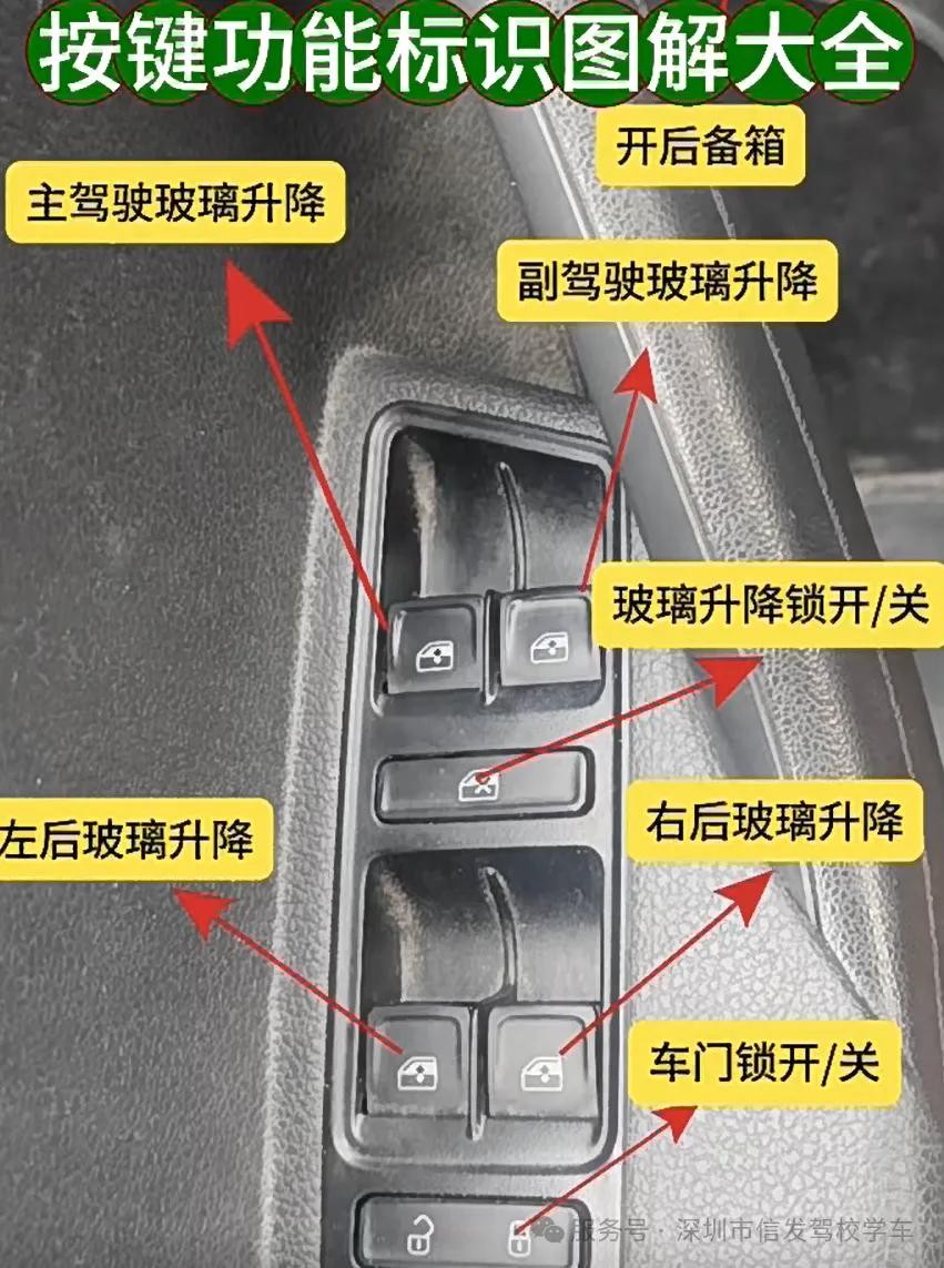 很多人在报完驾校,第一天上车练车一脸懵,因为车内按键太多,不知道有什么含义,因此给大家标注了车内按键及功能说明,希望对各位小伙伴有帮助。还没关注公众号的学员,关注公众号,每周都会分享学车考驾照,以及汽车知识。