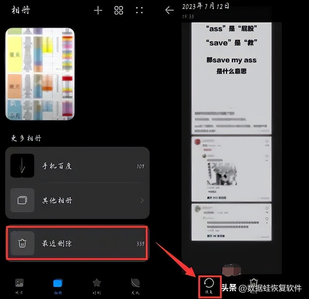 方法一:通过图库回收站恢复图片