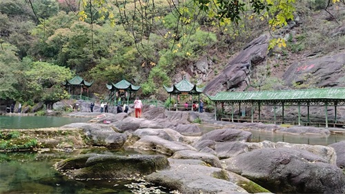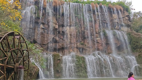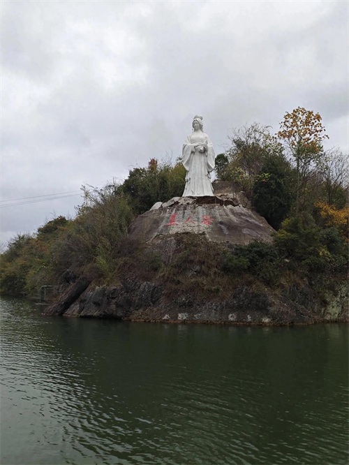 船到停泊点前,你会看到一个巨大的雕像,说是美人谷的美人。哈哈。记住看到这个雕像就要上岸了,入口那个地方像是农村的田埂,反正给人印象不是很好,也有可能是正在维修修缮的缘故。哈哈,我倒是提意见。但稍微往里走你就会发现它真的很美,入眼便是一片阶梯小瀑布,这里其实我不知道它叫啥,因为它也没有什么实际上显著的标识,也可能就是个入口,但是确实很好看。再往后走你就会发现一个,两个,三个,四个等等大瀑布、小瀑布。此时此刻你应该会想到一句诗,小桥流水人家走在这样一个地方。你会感觉心安、心静、心旷神怡,这门票花的值,也不说多了,直接给大家放几组照片吧。