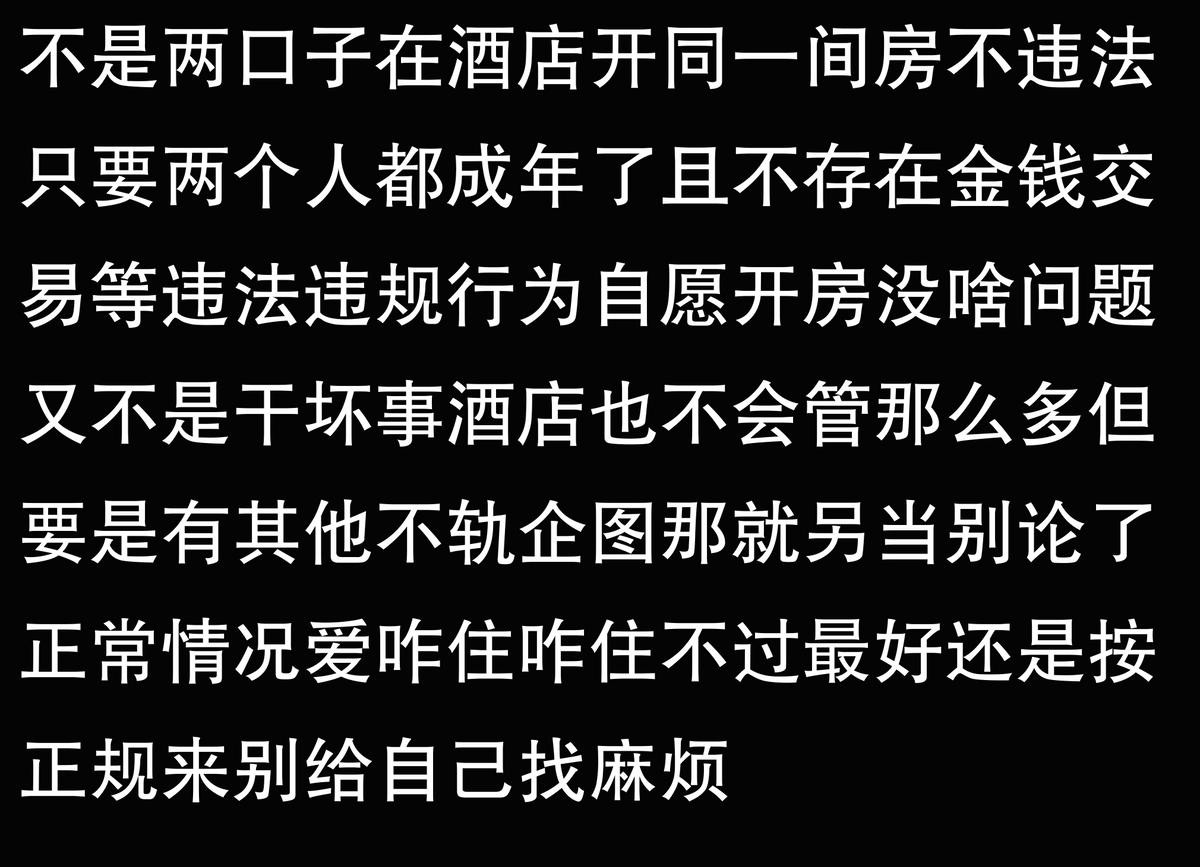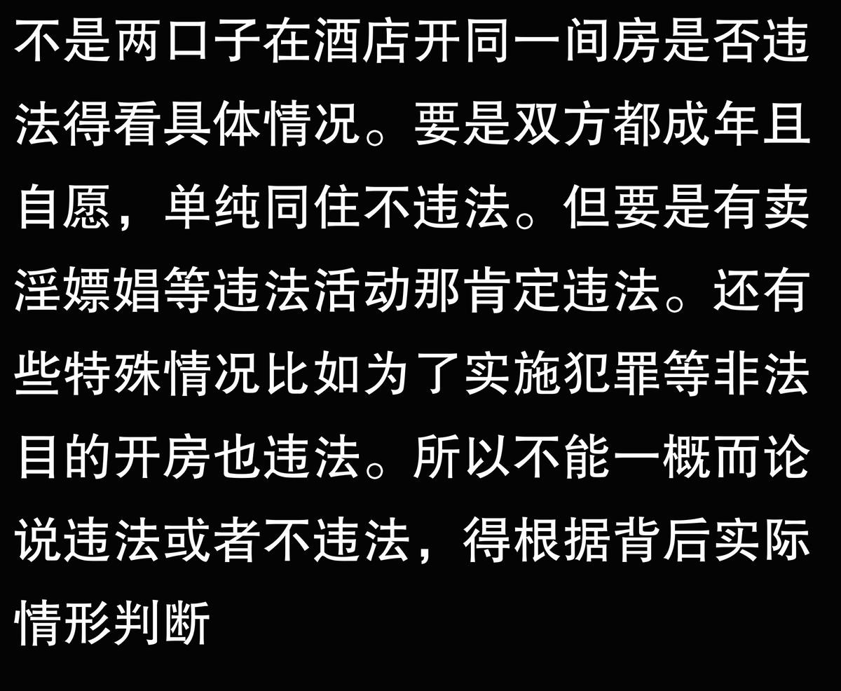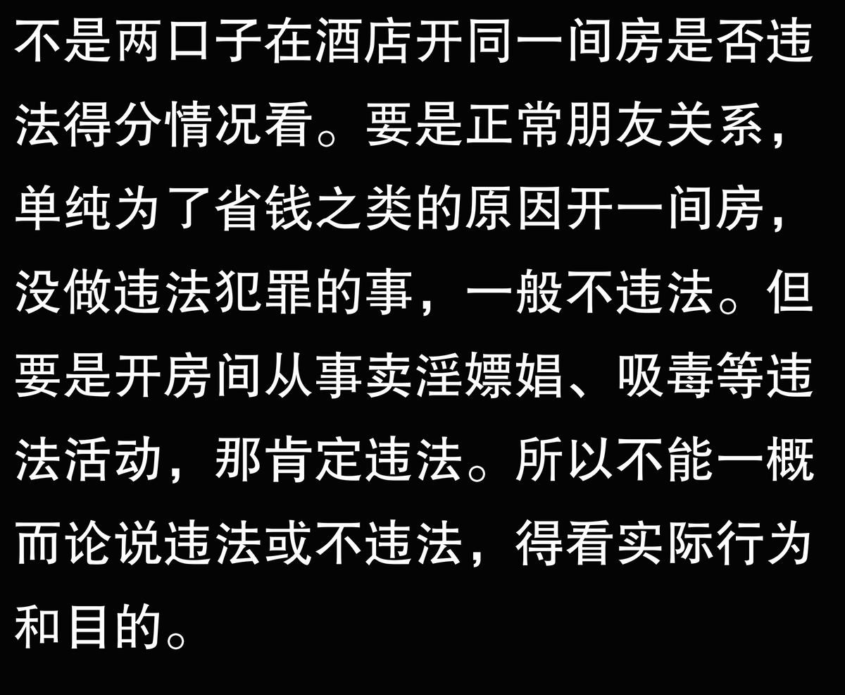 不是两口子,在酒店开同一间房入住违法吗?