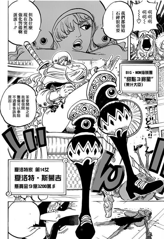 此时,为了捕捉布鲁克,第二位将星也开始登场,果汁大臣“夏洛特.斯慕吉”,这位夏洛特家族第14女有着超越克力架的高额赏金,达到了9亿3200万贝里,虽然能力未知,但是却让人浮想联翩,但她也并非大妈手下最强者。