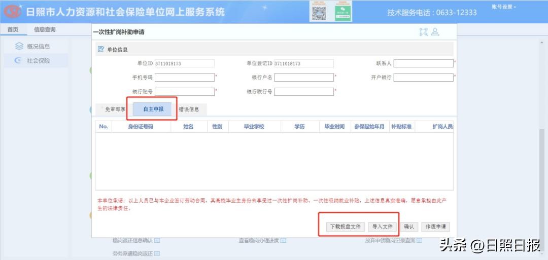 单位通过日照市人力资源和社会保障局网站登录“社会保险单位网上服务系统”,点击“一次性扩岗补助”。