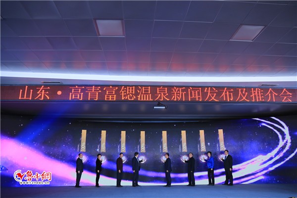 会上,高青县进行了温泉新闻发布和推介,山东省旅游发展委员会副主任张明池、中国旅游协会温泉分会秘书长张越致辞,市委常委、宣传部长毕荣青讲话。与会领导嘉宾共同启动山东·高青富锶温泉新闻发布仪式。