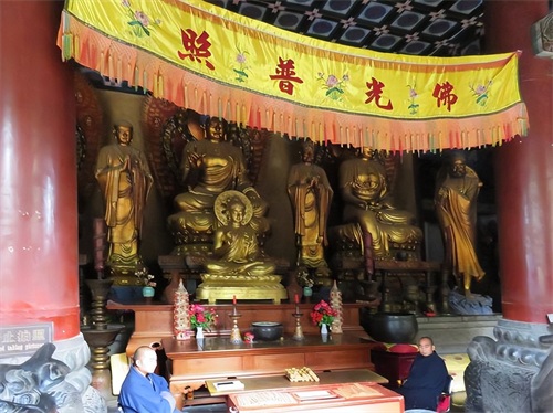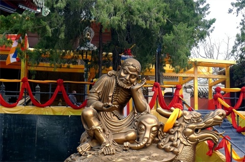 千佛殿房顶上的刻有“皇帝万岁”四个字,如果不细致的观察很难会注意到。还有方丈室正门上的门匾“方丈”,里面和尚介绍这二个字就像两个人正在比武。仔细一看,确实像那么回事。至于说要走7个地上的莲花就会生活幸福美满,就只能做吉言听听了。另外千佛殿的门匾上写着“西方圣人”,不知缘由,那位和尚也没提及。