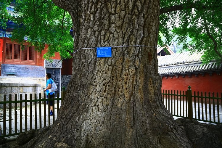 蓮花甬道一側,还有一株有着千年樹齡的古銀杏樹吸引着游客的目光,不仅是它的枝繁葉茂,而是樹身上的“千瘡百孔”。原來,這些疮孔是少林僧人長年累月練習大力金剛指和一指禪功時形成的。往后走依序是天王殿、大雄寶殿、法堂、方丈室、立雪亭和千佛殿。