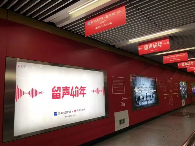 在地铁4号线宣武门站,新华社客户端与京港地铁举办的“留声40年”音乐主题影像展将南、北站厅装点一新。醒目的红色背景墙上,白色时间轴线串起一张张定格时代印记的经典照片。
