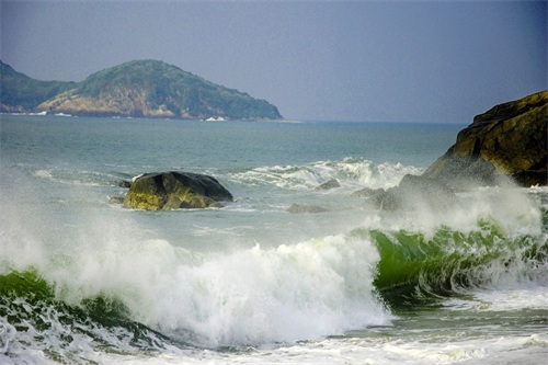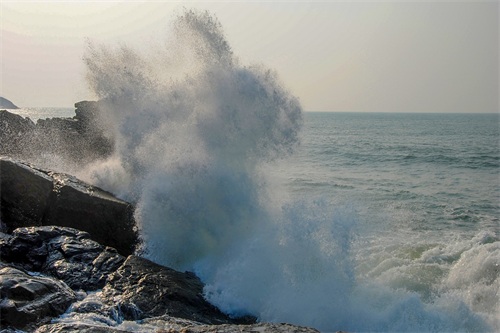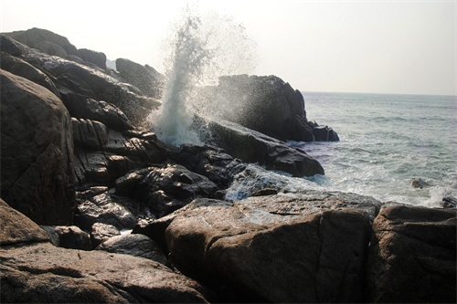 涓涓的细流,海浪拍打奇石激起的浪花、美丽的夕阳,形成一幅绝美画卷。