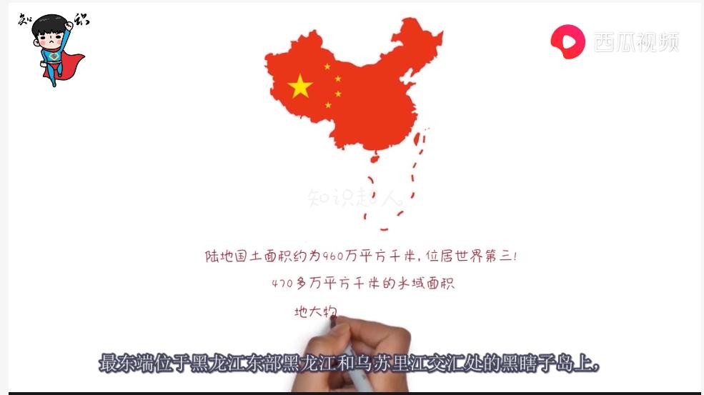西瓜视频创作人“知识超人”在其西瓜视频中就向大家分享了中国主要的地域分布以及中国的“东西南北中”分别都在哪里,让大家更加了解我们生活的地方。