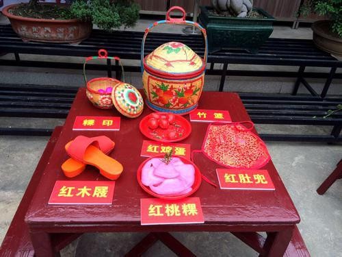 身穿红衣、脚着红屐、口咬鸡头……说起“出花园”的传统礼俗,老一辈潮汕人如数家珍。据介绍,按照传统习俗,参加成人礼的潮汕孩子需在浸泡了芙蓉花、石榴花、仙草、状元竹等12种植物的“鲜花水”中沐浴,沐浴后扎上红肚兜,再身穿红衣,脚踏红木屐,这“红色三件套”也大有讲究,须由外婆家出钱置办,红肚兜里要放置12颗桂圆和一束春草,象征小孩一生平安、幸福。