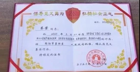 蔡荣被确认为见义勇为行为