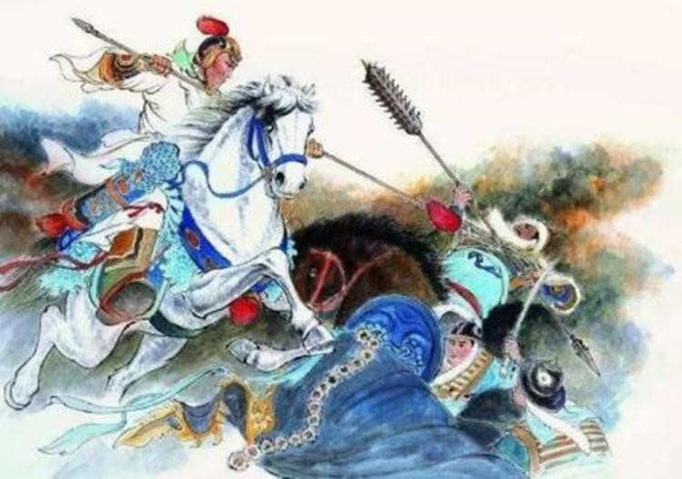 薛仁贵一身白衣,冲锋陷阵,所向披靡