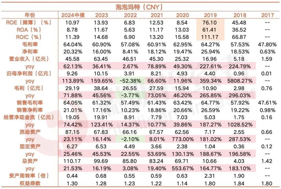 泡泡玛特一直以来有高额的净资产,截至2024年中报净资产84.52亿。