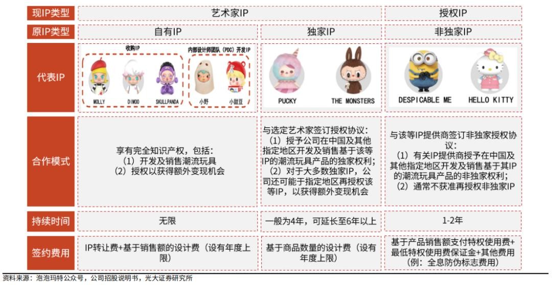 据公司公告披露,泡泡玛特在2017年分别获得了Satyr、妹头、Gudetama、Hello kitty和火影忍者疾风传等形象的使用授权。