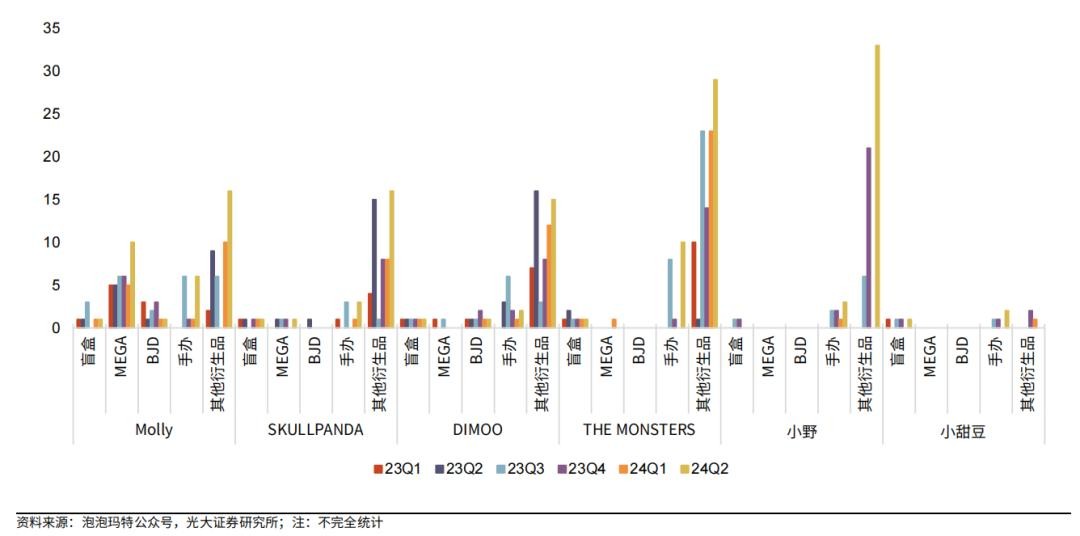 从2020年到2023年,手办、MEGA(高端产品线)、BGD(可动人偶)、毛绒玩具及其他衍生品陆续推出。