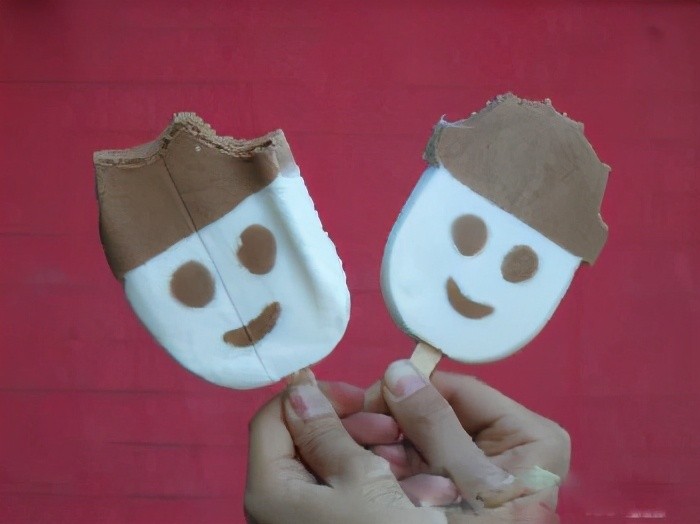 娃娃头雪糕,好象是奶油和可可混合的,5毛钱一个,做成类似卓别林的脸,可可色的帽子、眼睛和嘴巴,奶油的脸。在至今的记忆里那是到目前为止天下最好吃的雪糕,那时候买个娃娃头总是在考虑先吃帽子还是先吃脸,有时候干脆就放在碗里搅和在一起吃, 现在好象又出现啦。