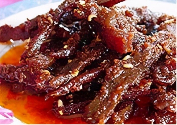 灯影牛肉干牛肉片薄如纸,色红亮,味麻辣鲜脆,细嚼之,回味无穷。市场上出售的灯影牛肉干品牌众多,重庆等地亦出现不少品牌,不过最为正宗的还是为达州本地品牌。其实灯影牛肉干本来也是达州的传统名小吃。