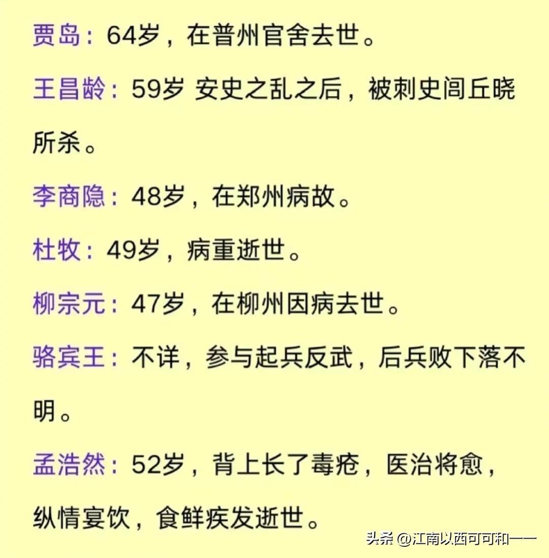 69、薛涛(即公元770-832年),享年63岁 字洪度。原籍长安,幼随父居成都,八九岁能诗,十六岁入乐籍,脱乐籍后终身未嫁。