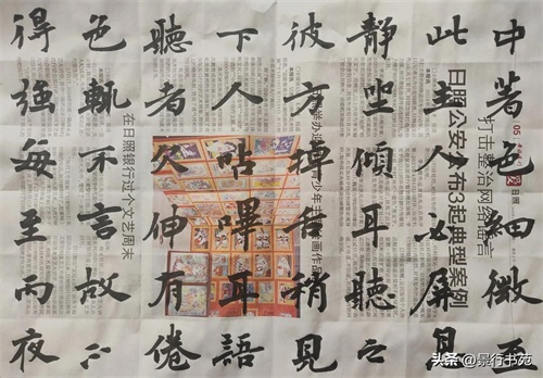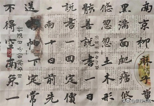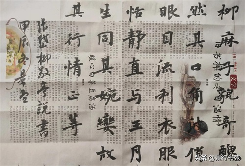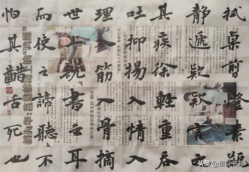 继续废报纸上练字,魏碑楷书抄写张岱《柳敬亭说书》