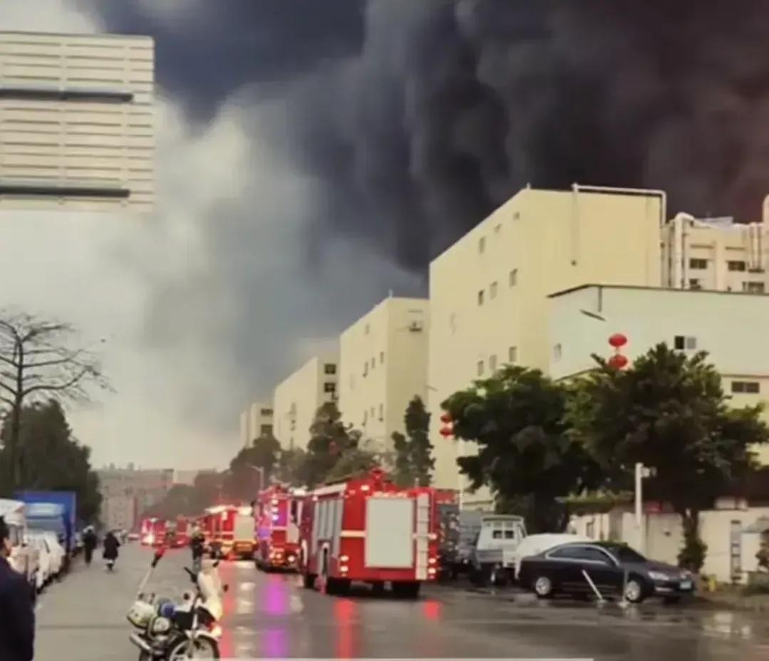直击东莞市长安镇新民一电镀厂发生火灾 现场浓烟滚滚