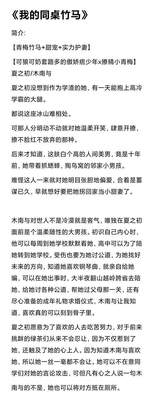 #有哪些好看的现代言情小说##有哪些好看的青梅竹马的宠文小说##青梅竹马到底有多甜##青梅竹马文##有朋友喜欢看轻松校园文的吗?#