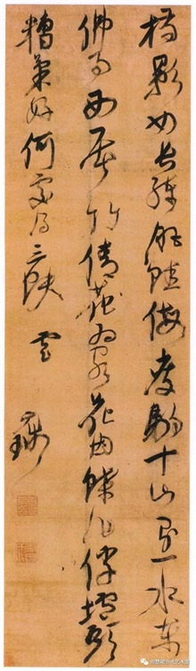 倪元璐《赠乐山五言律诗轴》 绢本草书 165.0×47.3cm 日本东京国立博物馆藏(高岛菊次郎氏寄赠)