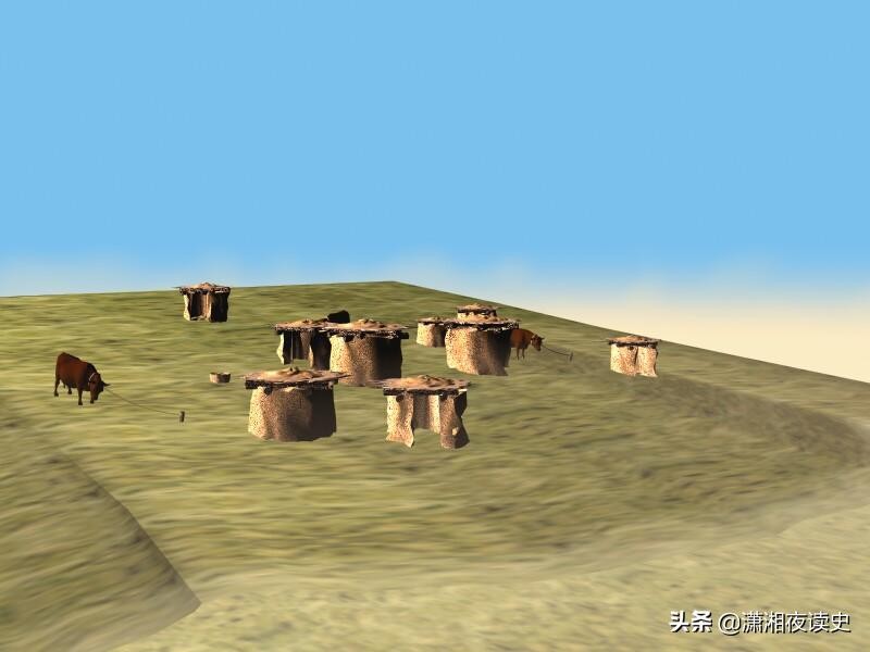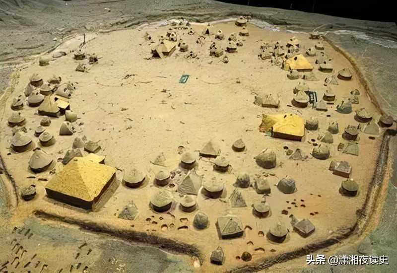 6700年轻的姜寨遗址复原模型,此时还没有阶级分化,但是出土冶炼的黄铜管