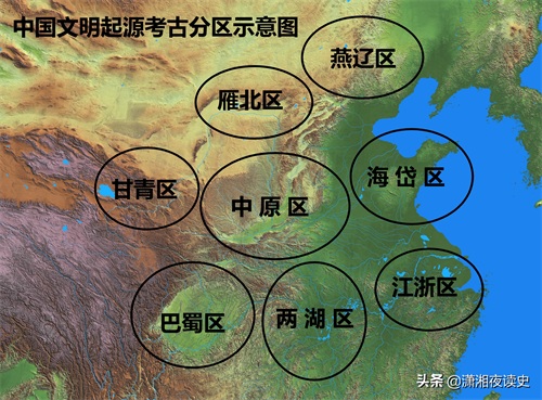 中国文明起源考古分区示意图