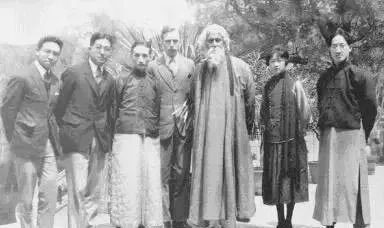 (图注:泰戈尔访华期间与徐志摩、林徽因等人合影)