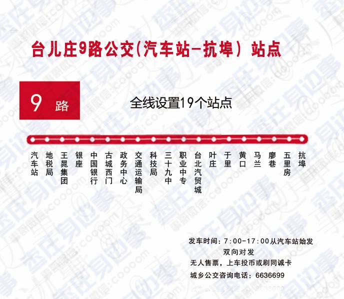 站点:台儿庄古城站、王晁集团、台儿庄开发区、泥沟、吴林、温泉小镇、枣庄客运换乘中心。票价:3元