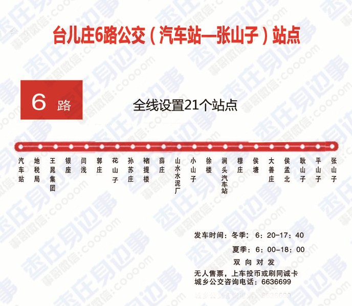 服务时间:枣庄西站6:20 —17:40,石榴园西门7:00—17:42
