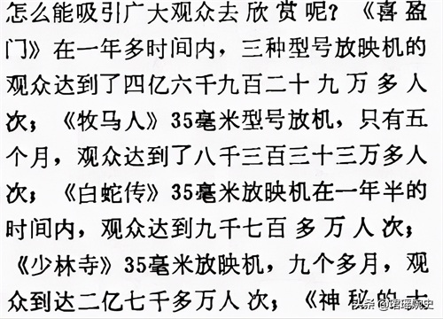 如果我们不算农村放映,只计算城市放映的观影人次的话,胡建在这篇文章中也提到过这样一段话:“《少林寺》35毫米放映机,九个多月,观众达到两亿七千多万人次。”