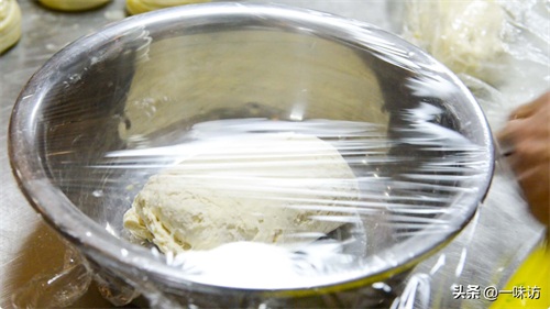 现在就可以醒面了,醒面静置30分钟,醒面这个步骤呢,主要是使咱们和好的面做出来更劲道,柔软,口感细腻顺滑,小窍门又来了,咱们醒面之后,注意不要过多揉面,如果揉面的话,做出来的饼会发硬,吃起来就不酥软了。