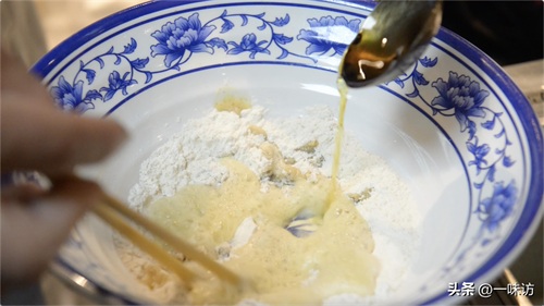 窍门来了面粉和油的比例是1:5,50g面粉就需要加250g的油,咱们边放油边搅拌,使面和油充分的融合,没有小面疙瘩,做出来的饼口感也更好。