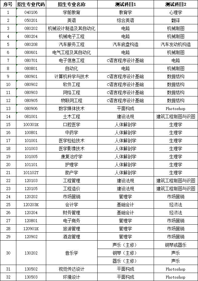 (二)报名学校自荐考试的考生根据专科毕业专业和专业指导目录中本、专科专业对应关系,限选报学校 2 个以内本科招生专业,选报专业对应的《高等数学》考试科目须相同。