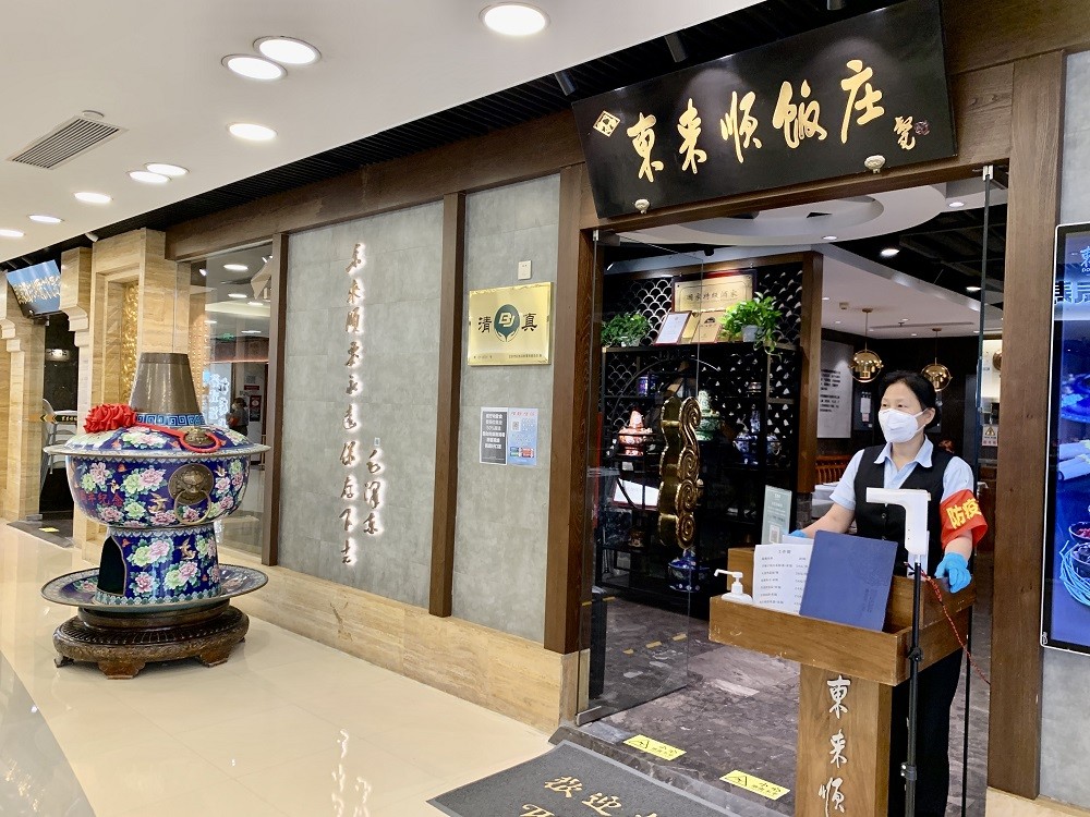 上午十点,距离开餐还有一个小时,东来顺新东安店里餐区、后厨都在有条不紊地进行着餐前准备。