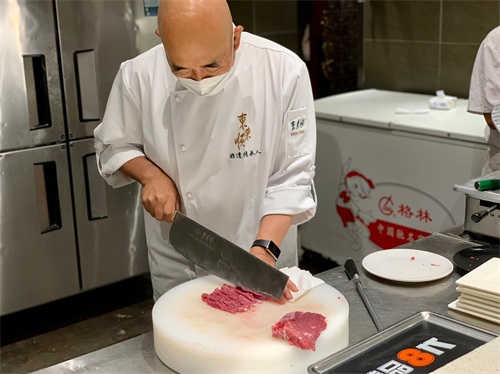 非遗传承人陈立新展示手切羊肉技艺/记者拍摄